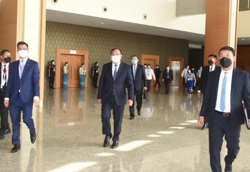 U Wunna Maung Lwin, Union Minister for Foreign Affairs of the Republic of the Union of Myanmar received Mr Prak Sokhonn, Deputy Prime Minister, Minister of Foreign Affairs and International Cooperation of Cambodia and special envoy to Myanmar of the ASEAN Chair and Mr Dato Lim Jock Hoi, Secretary-General of ASEAN at 2:00 pm on 21 March 2022 at the Ministry of Foreign Affairs in Nay Pyi Taw.