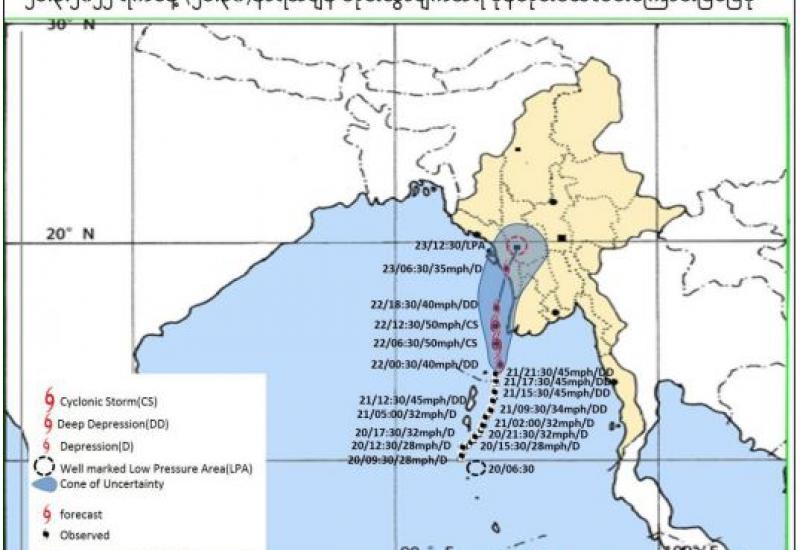 ACCORDING to the observations at 9:30 pm yesterday, the deep depression over North Andaman Sea and adjoining Southeast Bay of Bengal has moved North wards and now lies over North Andaman Sea and adjoining Southeast Bay of Bengal and East central Bay of Bengal. It is centred at about (35) Nautical miles East of Coco Island, about (120) Nautical miles South of Hainggyikyun, about (170) Nautical miles South-Southwest of Pathein, about (270) Nautical miles South of Thandwe, about (245) Nautical miles West of Dawei,about (260) Nautical miles Southwest of Mawlamyine, about (215)Nautical miles Southwest of Yangon(Myanmar), about(155) Nautical miles Northeast of Port Blair and about (90) Nautical miles Northeast of Mayabundar (India).