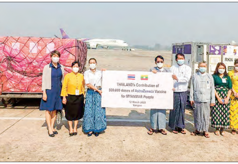 THE first batch of COVID-19 vaccines donated by the Thailand government arrived at the Yangon International Airport yesterday.