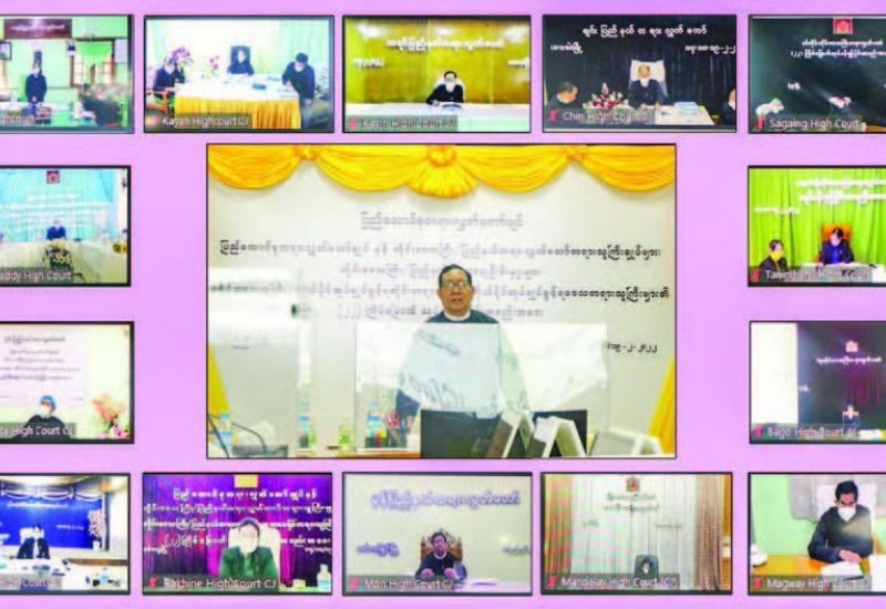CHIEF Justice of the Union Supreme Court U Htun Htun Oo attended the 22nd virtual coordination meeting of the Union Supreme Court with the State/Region High Courts, Self-Administered Division Court, Self-Administered Zones Courts and District Courts online yesterday.