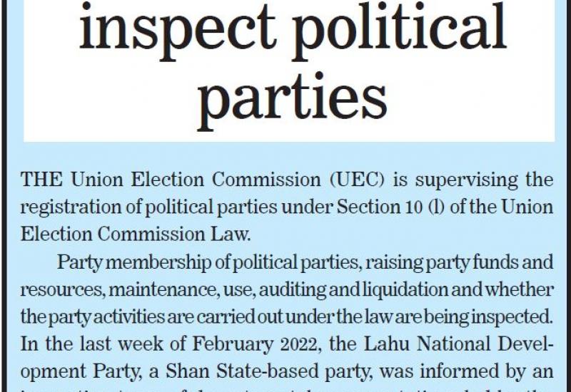 THE Union Election Commission (UEC) is supervising the registration of political parties under Section 10 (l) of the Union Election Commission Law.