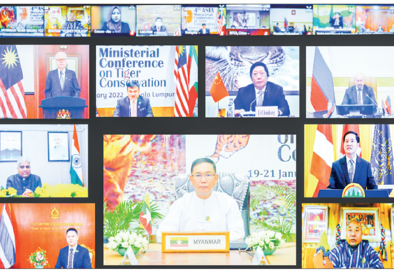 UNION Minister for Natural Resources and Environmental Conservation U Khin Maung Yi and officials attended the 4th Asia Ministerial Conference on tiger conservation, hosted by Malaysia, through video conference yesterday afternoon.