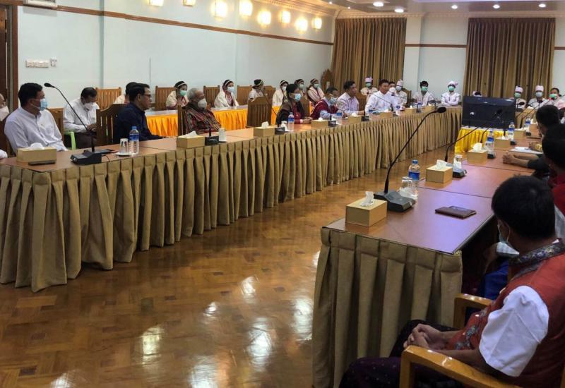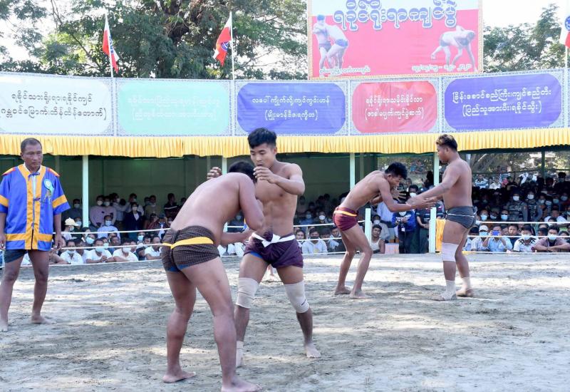 State Administration Council members Mahn Nyein Maung, Daw Aye Nu Sein and U Moung Har including Union ministers, Rakhine State Chief minister and command commander paid homage to Rakhine State Ovadacariya Sayadaw, Rakhine State Sangha Nayaka Committee Chairman Sayadaw and senior monks at Sasana Beikman of Lawka Nanda Pagoda in Sittway Township yesterday.