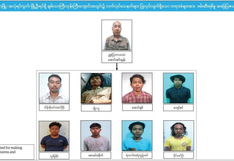 ACCORDING to the report on the arrival of socalled GDF terrorists at Chan Thar Gyi Monastery in MyoOo ward, Ahlon, in Monywa, on 12 December, a combined team inspected the monastery and arrested a total of 9 men with weapons and ammunition.