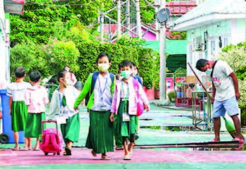 STUDENTS are now happily back in school in Yangon Region as the COVID-19 cases across the country significantly dropped. All the schools were reopened on 1 November, in line with the health protocols for COVID-19 issued by the Ministry of Health.