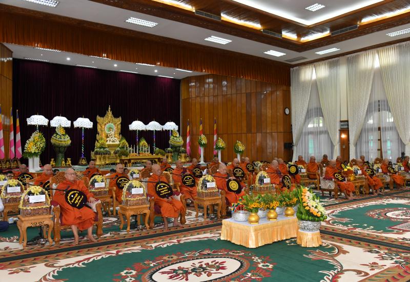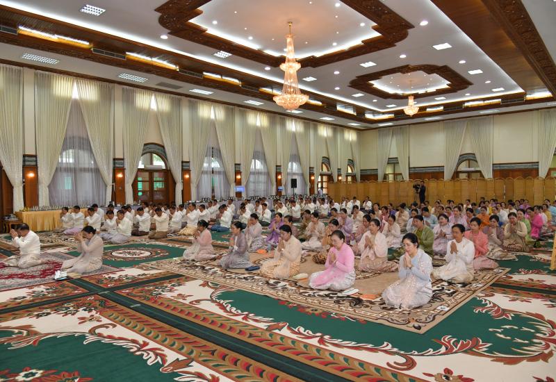 Families of the Office of the Commander-in-Chief (Army, Navy and Air) held the Waso robe offering ceremony for 2025 at Anawrahta Hall of the Office of the Commander-in-Chief (Army) yesterday morning, attended by Chairman of the State Administration Council, Commander-in-Chief of Defence Services Senior General Min Aung Hlaing and his wife Daw Kyu Kyu Hla.