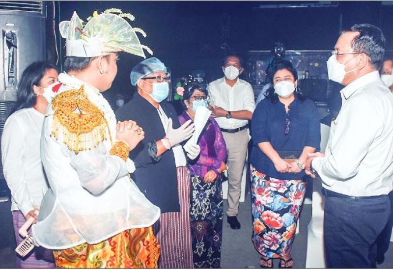 UNION MINISTER for Information U Maung Maung Ohn greeted the artistes after inspecting the broadcasting sections of MRTV and Shwe Than Lwin Media.