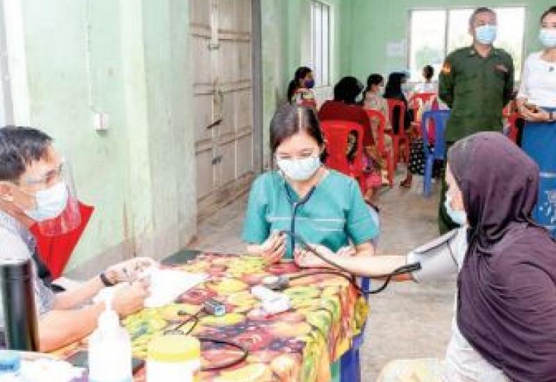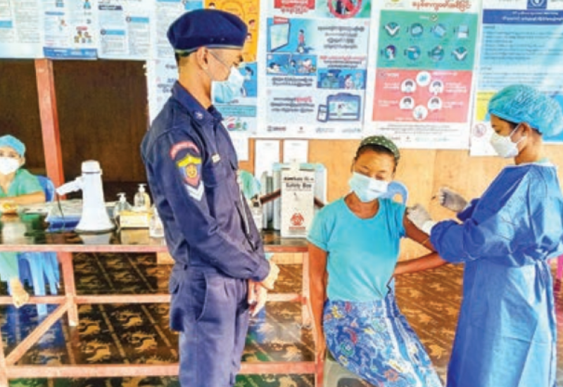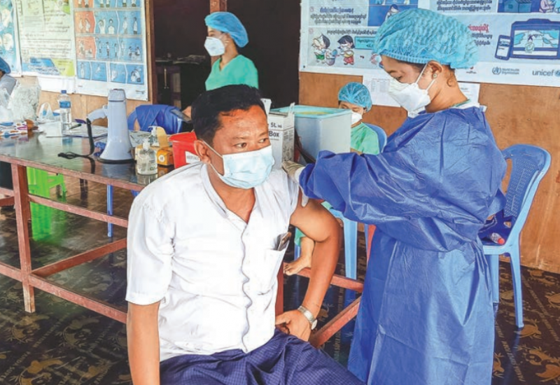 PEOPLE over 45-year-old in IDP camps in Sittway Township, Rakhine State, continued to be vaccinated with Sinovac COVID-19 vaccine in the multi-purpose cyclone shelter in Thechaung village.