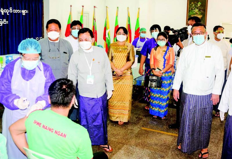 The officials of Mandalay Region completed the first COVID vaccination processes as per the target populations and priority groups and conducted the second vaccination programmes for those over the age of 65 in Aungmyaythazan Township yesterday.