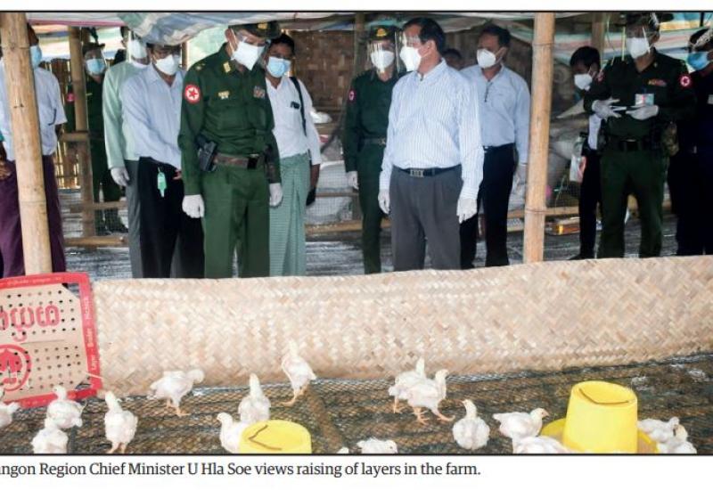 YANGON Region Chief Minister U Hla Soe, Commander of Yangon Command Maj-Gen Nyunt Win Swe and officials yesterday viewed vaccination process of COVID-19 and provided protective equipment in Taikkyi Township before viewing monsoon paddy model plot and private breeding farms.
