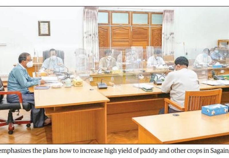 UNION Minister for Agriculture, Irrigation and Livestock U Tin Htut Oo addressed a meeting on summer/monsoon paddy and crop production development in Sagaing Region yesterday morning.
