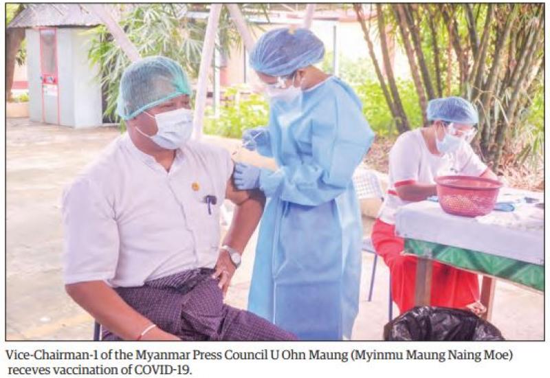 MEMBERS of Myanmar Press Council, including the council Chairman and the Vice-Chairman, received the COVID-19 vaccines yesterday at the Mingaladon Township Public Health Department, Yangon.