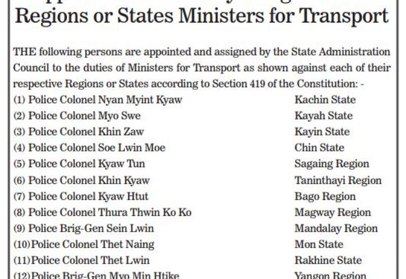 Appointment and Duty Assignment of Regions or States Ministers for Transport