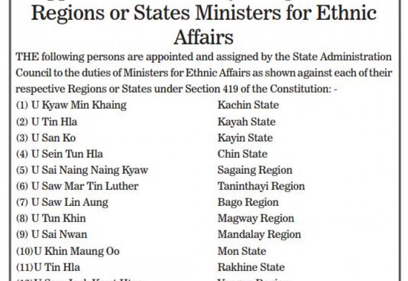 Appointment and Duty Assignment of Regions or States Ministers for Ethnic Affairs