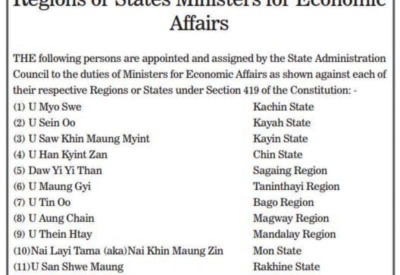 Appointment and Duty Assignment of Regions or States Ministers for Economic Affairs