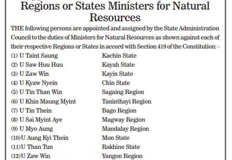 Appointment and Duty Assignment of Regions or States Ministers for Natural Resources