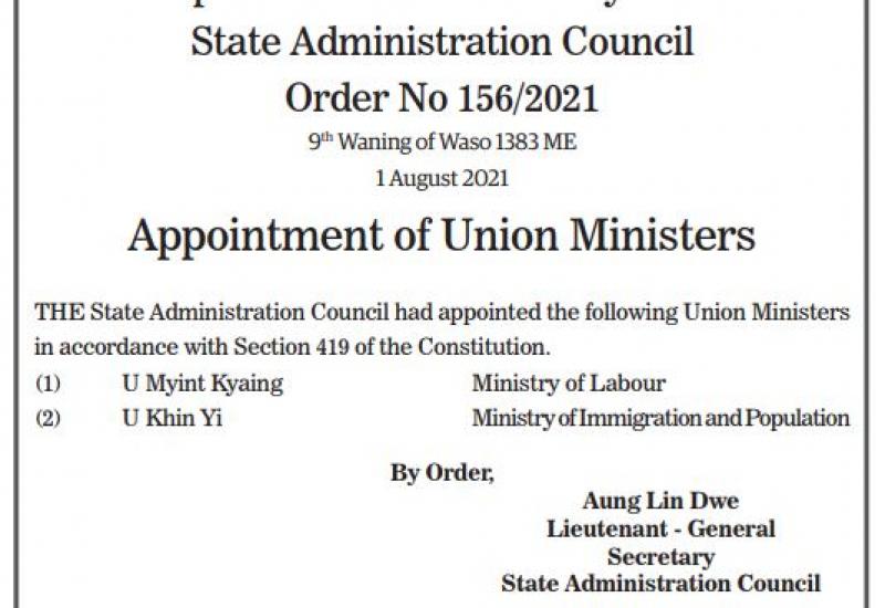 Order No 155/2021 Transfer and Appointment of Union Minister