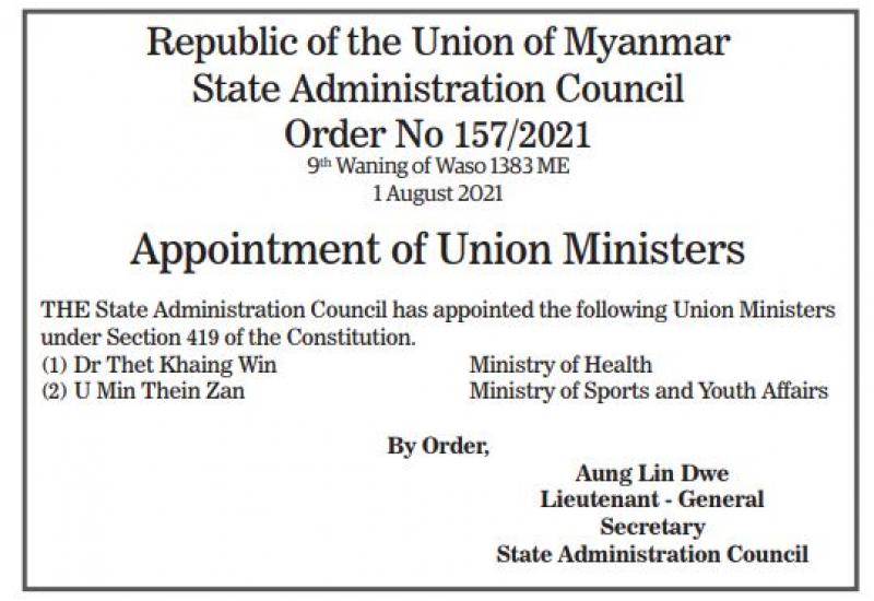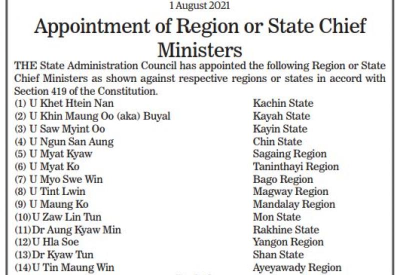 Order No 158/2021 Appointment of Region or State Chief Ministers