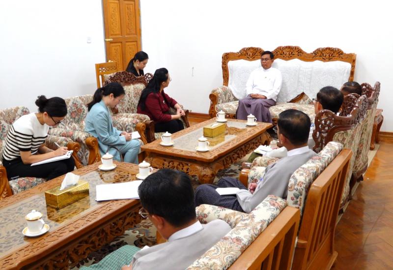 Union Minister for Construction U Myo Thant received Ambassador of the People’s Republic of China to Myanmar Ms Ma Jia yesterday at the Ministry of Construction in Nay Pyi Taw.