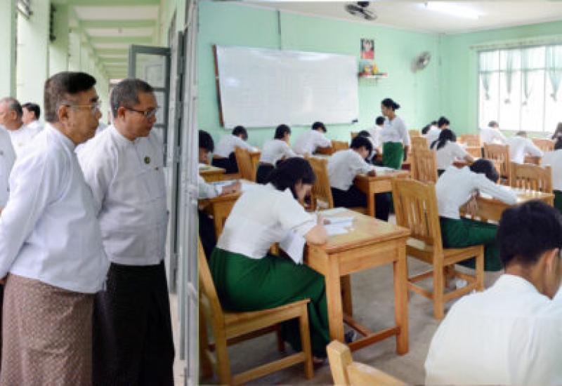 Union Minister for Education Dr Nyunt Phay, accompanied by deputy ministers and officials, visited a matriculation exam centre at Basic Education High School Branch in Yan Aung Myin Village-tract, Dekkhinathiri Township, Nay Pyi Taw yesterday morning to encourage students sitting the sixth and final day of the 2025 matriculation examination.