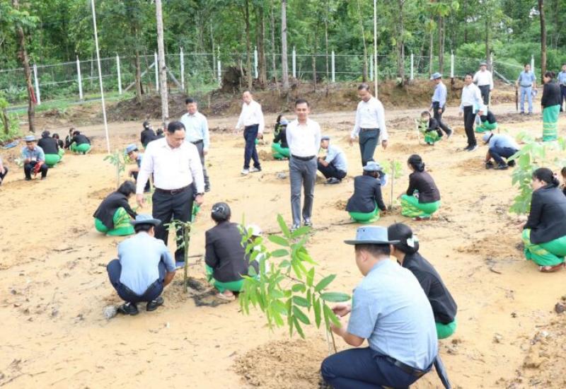 The Ministry of Border Affairs organized its first monsoon tree-planting ceremony in the compound of the temporary staff housing yesterday.