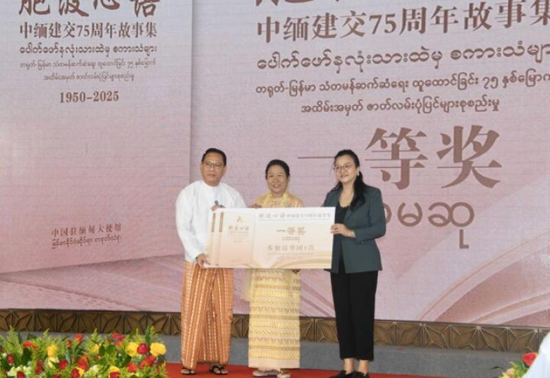 The book launch and prize awarding ceremony for “Voices from the Paukphaw Heart,” a collection of stories commemorating the 75th anniversary of Myanmar-China diplomatic relations, symbolizing the enduring Paukphaw friendship between the two nations, was held at the Wyndham Grand Yangon Hotel in Yangon yesterday.