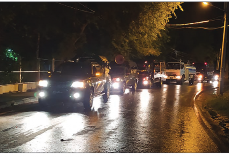 TATMADAW, Police Force and Fire Brigade jointly conducted security measures to ensure the State's stability, security of people, the rule of law and community peace starting 14 February night. Tatmadaw, police and fire brigade members also jointly conduct security measures for the peaceful night and community peace in respective regions and states and keep serving security measures the whole day.