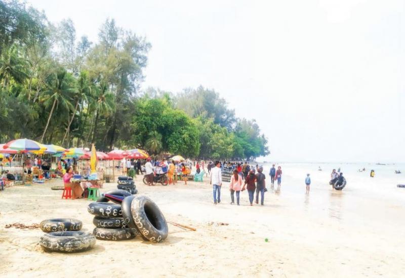 NGAPALI BEACH is being crowded with the travellers from across the country on the second day of Thingyan holiday.