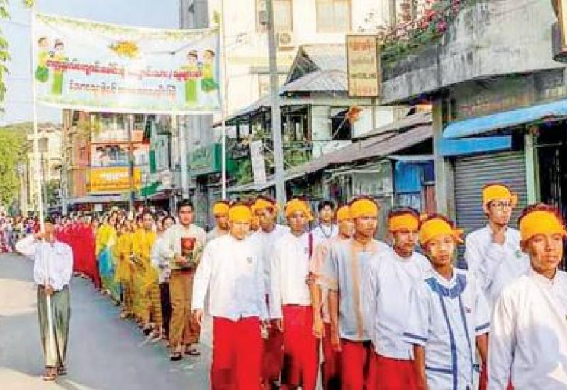 STUDENTS from various universities collaborated under the leadership of the University social association (Sittway) to celebrate the Incense Grinding Festival and the ceremony of Sacred Bathing Buddha Images yesterday afternoon on 12 April in Sittway.