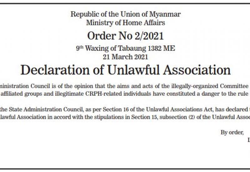 Declaration of Unlawful Association #The Global New light of Myanmar