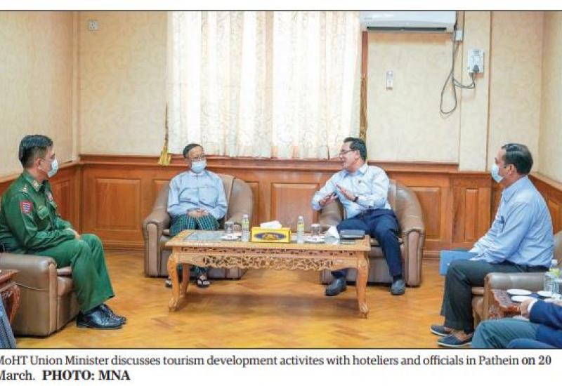 UNION MINISTER for Hotels and Tourism U Maung Maung Ohn met Chairman of the Ayeyawady Region Administration Council U Ye Myint to discuss tourism development activities in the region on 20 March in Pathein in Ayeyawady Region.