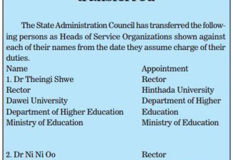 Heads of Service Organizations transferred #The Global New light of Myanmar
