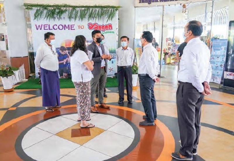 UNION MINISTER for Hotels and Tourism U Maung Maung Ohn made an inspection tour to the pleasure craft of the Inland Water Transport, Waterboom in Dawbon Township, Tourism Development Centre in Bosunpat street, Karaweik Hall, Chatrium Hotel, Sedona Hotel and Lotte Hotel on 19 March in Yangon. The Union Minister, accompanied by the chairpersons and officials of the Myanmar Tourism Federation and its affiliated organizations, took a ride onboard the cruise from the Inland Water Transport along the Yangon River.
