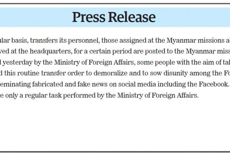 MYANMAR Police Force released a statement that the administrative officials and security forces are making efforts for enforcing the rule of law despite the riots. The required orders and instructions, which meet the needs of public for stability of state and security, are being issued and public announcements are also being released, the statement said. It was found that the protesters incite or threaten the youths to accelerate the riots in some places of the country via social media by forming networks on 28 February.