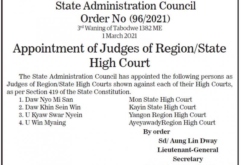 THE State of Emergency was declared on 1 February 2021 and it was already announced that action will be taken against those violate the Section 144 of Criminal Procedure and commit incitement to join CDM by force on 26 February. About 1000 protesters shouting out slogans marched to the Taninthayi Region Administration Council Office in Dawei yesterday morning.