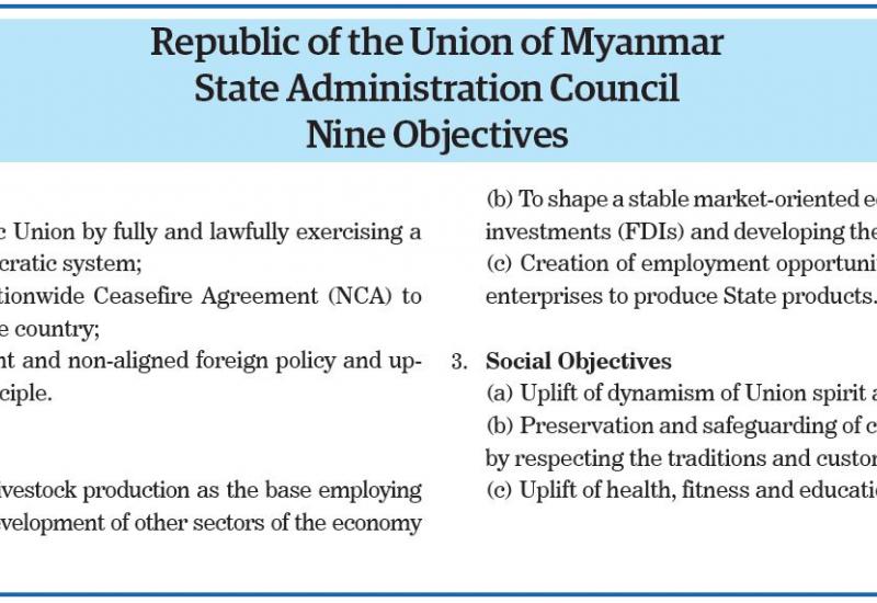 Republic of the Union of Myanmar State Administration Council Nine Objectives