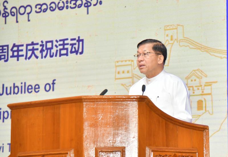 Union Minister for Information U Maung Maung Ohn, Union Minister for Social Welfare, Relief and Resettlement Dr Soe Win, Deputy Minister for Education Dr Zaw Myint, Chinese Ambassador to Myanmar Ms Ma Jia and other relevant officials attended a ceremony to provide “Moral Support for Communities Affected by Earthquake” marking the 75th anniversary of China-Myanmar diplomatic ties at Myanma Radio and Television in Nay Pyi Taw Tatkon yesterday.
