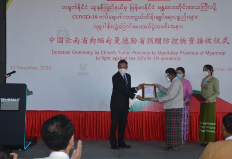 YUNNAN Provincial Government of China donated COVID-19 medical devices worth of K800 million to the Mandalay regional government yesterday.