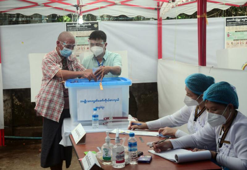 Eligible voters in Mandalay cast their ballots for 2020 General Election in accordance with COVID-19 guidelines yesterday. There are a total of 4,940,592 eligible voters and 5,447 polling stations in Mandalay Region, and there are a total of 1,275,370 voters and 679 polling stations in Mandalay District.