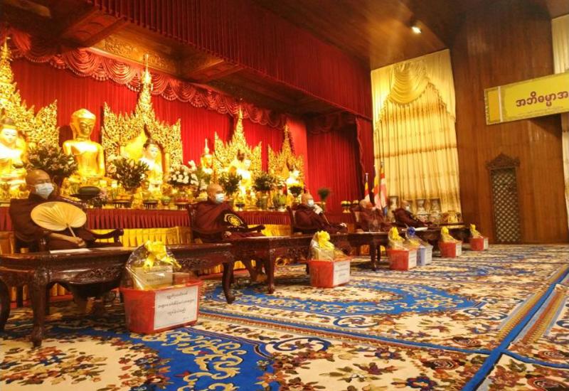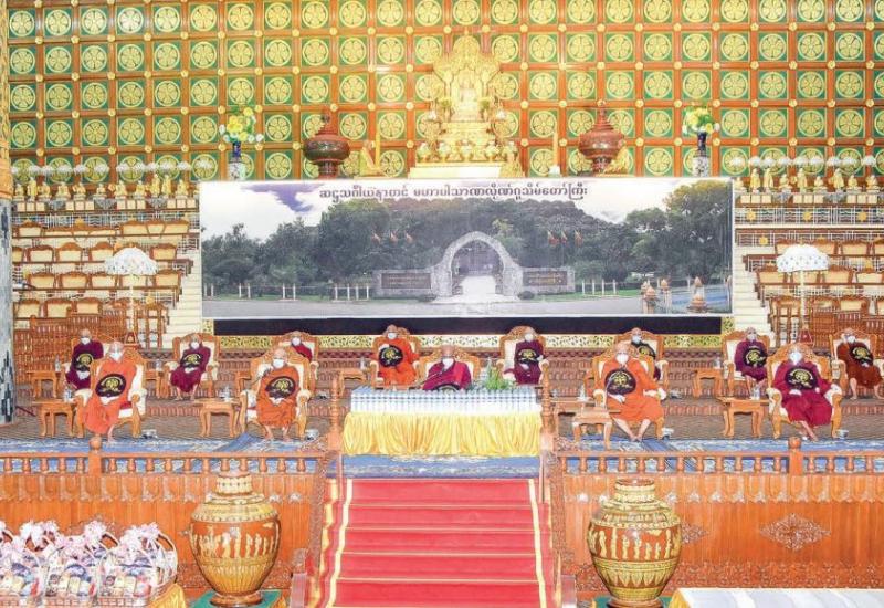 STATE Sangha Maha Nayaka Committee member Sayadaws recited Parittas at the Maha Pathana Cave in Thiri Mingalar Kaba Aye Hill in Yangon on the Full Moon Day of Thadingyut yesterday.