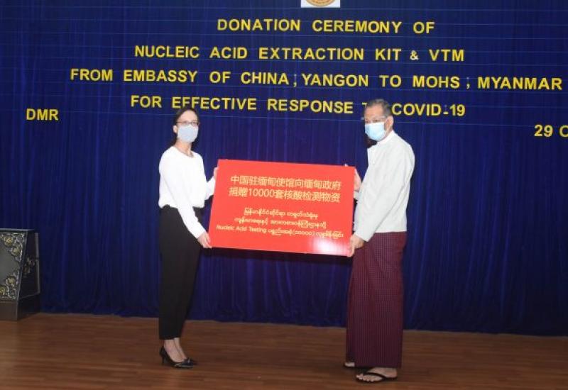 CHINESE Embassy in Yangon donated viral nucleic acid extraction test kits and viral transport kits to the Ministry of Health and Sports yesterday morning.