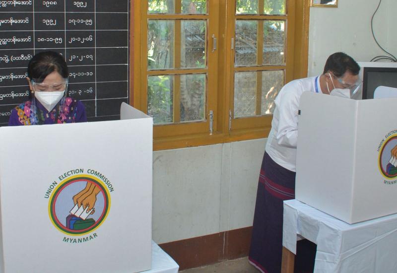 ADVANCE voters, in compliance with COVID-19 preventive guidelines, cast their ballots for 2020 General Election at the respective ward/ village-tract election sub-commission offices in Nay Pyi Taw yesterday.