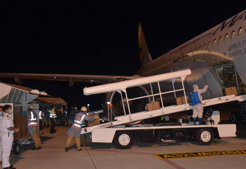 Medical equipment for COVID-19 prevention imported from China and to be used in the 2020 General Election arrived at Yangon and Mandalay international airports by special flights on 23 and 24 October.