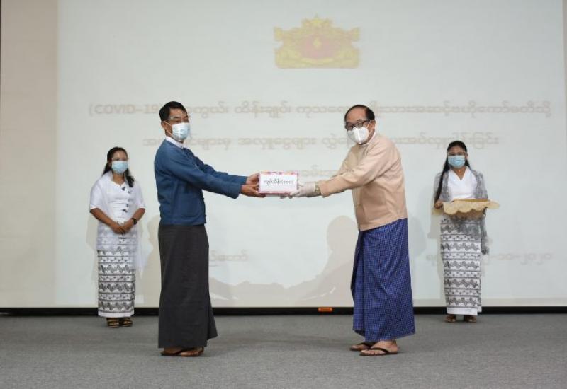 Union Minister for Health and Sports Dr Myint Htwe, in his capacity as the Secretary of National-Level Central Committee on Prevention, Control and Treatment of COVID-19, received cash donation at his office in Nay Pyi Taw yesterday afternoon.