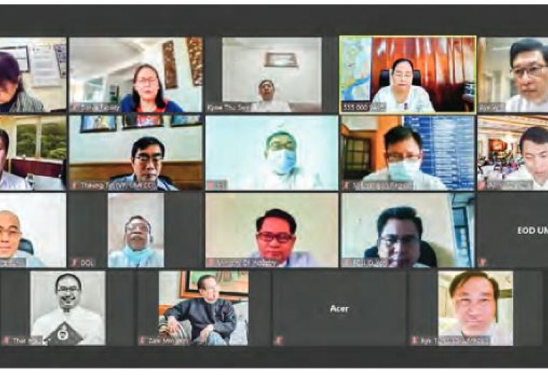 OFFICIALS from Union of Myanmar Federation of Chambers of Commerce and Industry (UMFCCI) discussed with Yangon Region Immigration and Human Resources Minister Daw Moe Moe Suu Kyi on 26 September payment for social security contributions to the stay-home employees in Yangon following the government imposed Stay-at-Home order for the people in townships of Yangon Region not to go to their workplaces, except for the essential businesses.