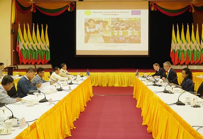 The Ministry of Education and the European Union held the Education Sector Reform Contract Policy Dialogue on 23 March for the EU’s disbursement of 32 million euro (K51 billion) in support of education reform in Myanmar.