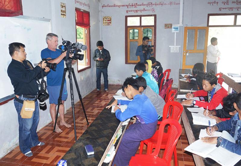 Next, the media group visited Post Primary School of Ywama Village and gathered news on school children sitting for their examinations.