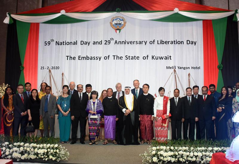 THE Embassy of Kuwait in Yangon celebrated the 59th National Day and the 29th Liberation Day of the State of Kuwait at the Melia Yangon Hotel yesterday. Union Minister for Construction U Han Zaw and wife attended the celebration. The event had begun after the national anthems of Myanmar and Kuwait were played. Afterwards, Union Minister U Han Zaw and charge d’affaires a.i. of Embassy of Kuwait Mr Adel Al Adgham sliced a cake to commemorate the State of Kuwait’s 59th National Day and 29th Liberation Day. The Union Minister and the charge d’affaires a.i.