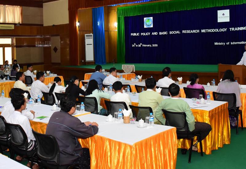 A Public Policy and Basic Social Research Methodology Training was conducted at the Assembly Hall of the Ministry of Information in Nay Pyi Taw yesterday morning.