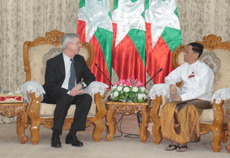CHAIRMAN of the Union Election Commission U Hla Thein received a delegation led by Mr Tony Banbury, President of International Foundation for Electoral System (IFES), at his office in Nay Pyi Taw yesterday.